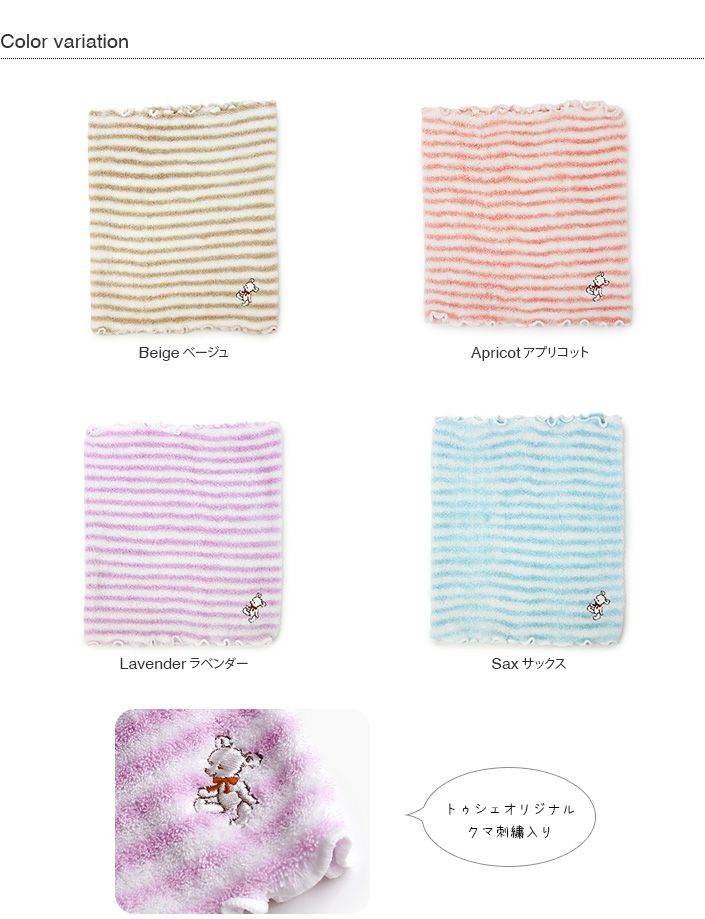 和泉山脈の天然水で晒しを行うことで生まれる、抜群の吸水性と肌なじみの良い柔らかさが特長です。