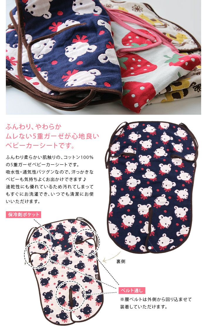 保冷剤ポケット付き!5重ガーゼベビーカーシート 5重ガーゼ ベビーカーシート