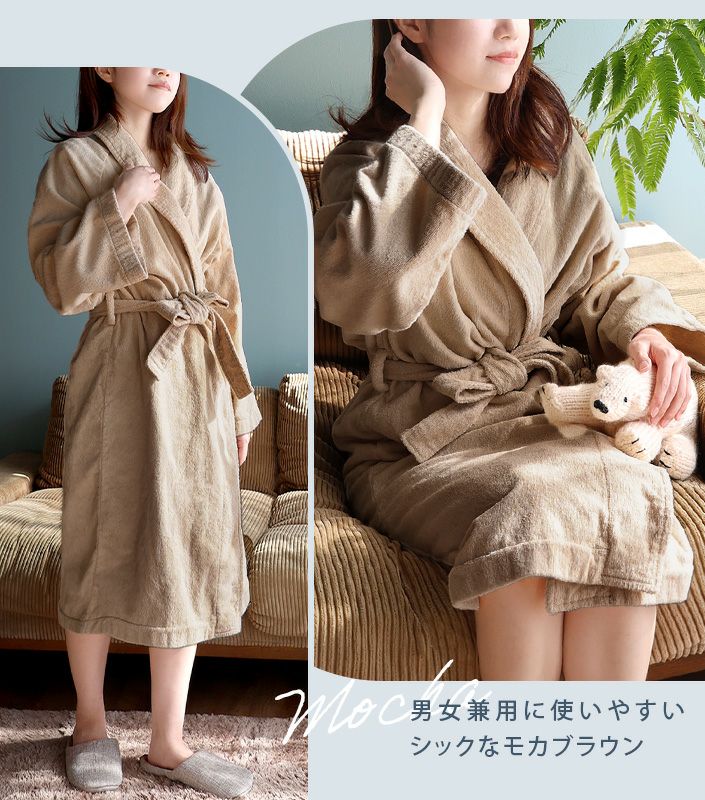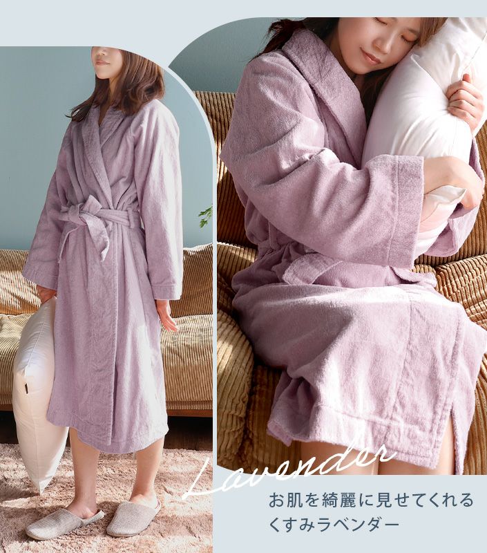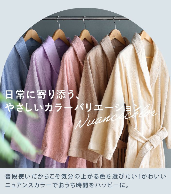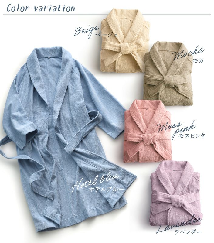 ホテルスタイルバスローブの通販ならタオル直販店ヒオリエ。「ホテルスタイルバスローブ」は、高密度にしっかりと織り上げられた上質感のある日本製バスローブです。肌触りの心地良い両面パイルで、ふっくらと厚みがあり吸水性も抜群。シンプルでスッキリとしたデザインは男女問わずお使いいただけます。お風呂上り以外にもゆったり過ごしたいリラックスタイムや、お子様との入浴時にもおすすめです。