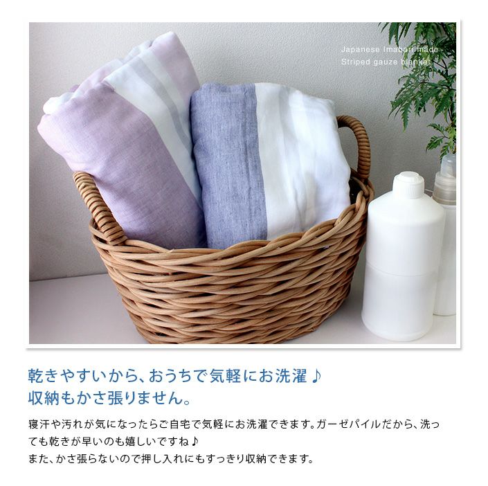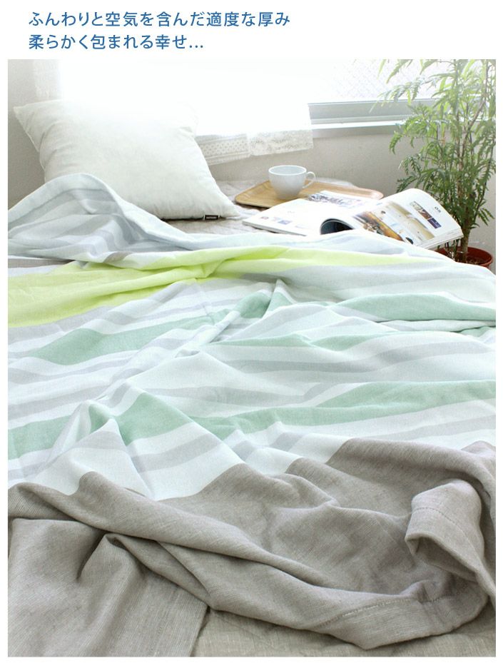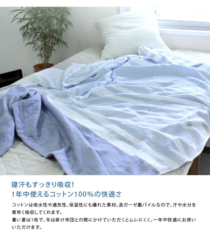 爽やかガーゼで一晩中ぐっすり♪ (送料無料)今治タオル ガーゼ タオルケット<ボーダー柄>