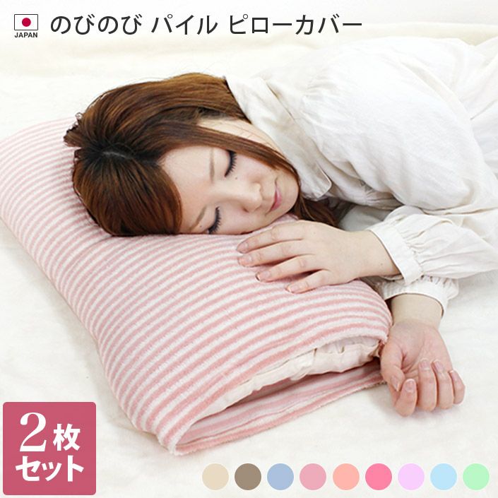 のびのびでどんな枕にもフィット! <同色2枚セット>のびのび パイル ピローカバー