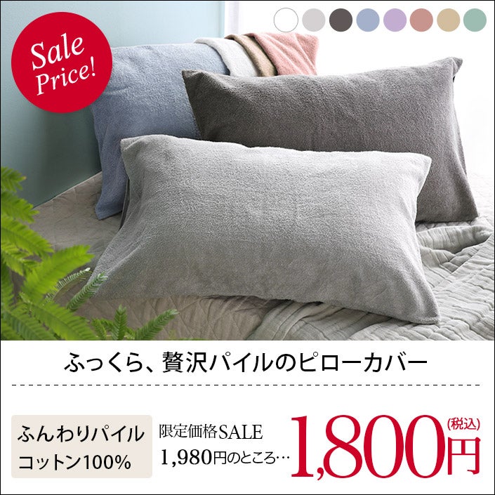 パイルピローカバーの通販ならタオル直販店ヒオリエ。「パイルピローカバー」は、ふかふかパイルが心地よいコットン100%のタオル地まくらカバーです。コットンは吸収性や通気性、保温性に優れ、寝汗などの水分を素早く吸収してくれるので爽やかで快適な寝心地です。頬にふれるパイルのふっくら感で、ぐっすり贅沢な気分でお休みいただけます。ファスナーやボタンなどの金具を一切使用していないので、お子様にも安心です。