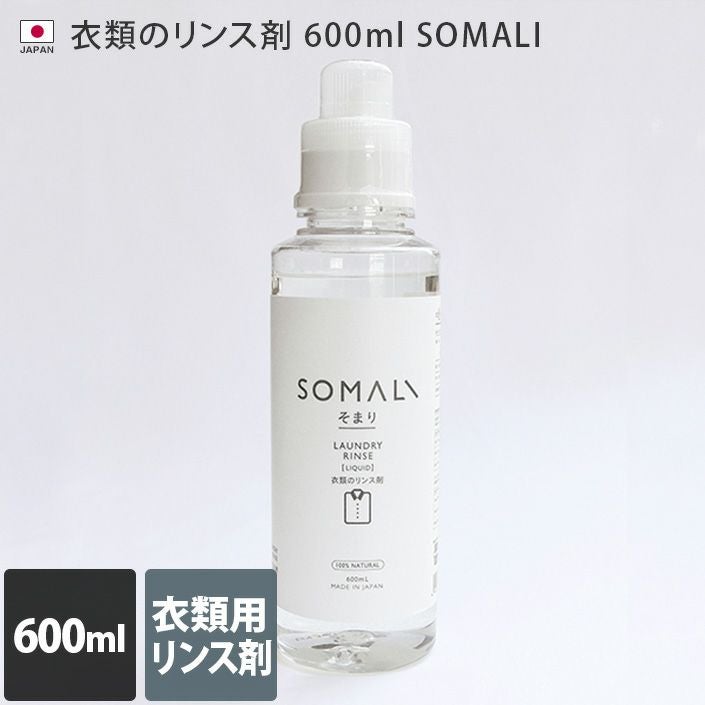 衣類用液体石けんとセットで使っていただく、リンス剤です。黄ばみや石けんカスの発生を抑え、石けんによる衣類のごわつきを中和し、ふっくらとした風合いに戻す効果があります。