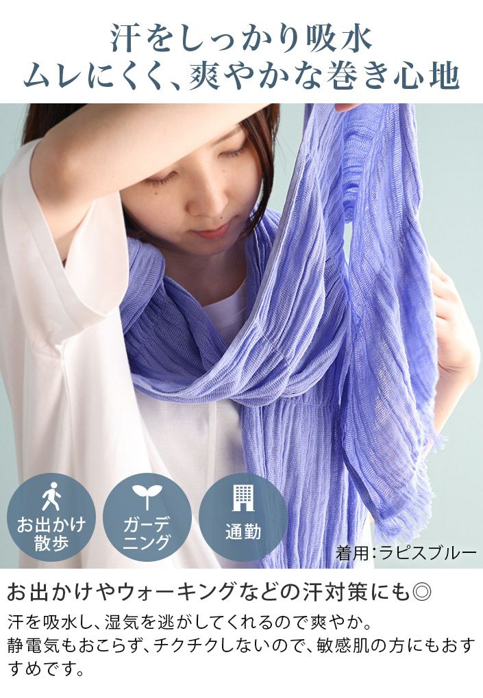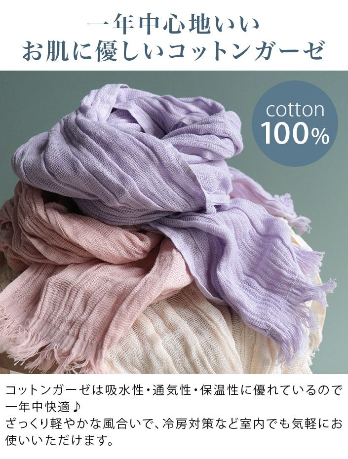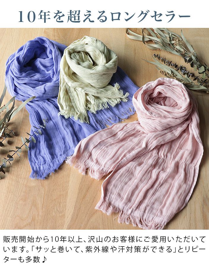 紫外線対策にもおすすめ! コットン ガーゼマフラー ロング丈