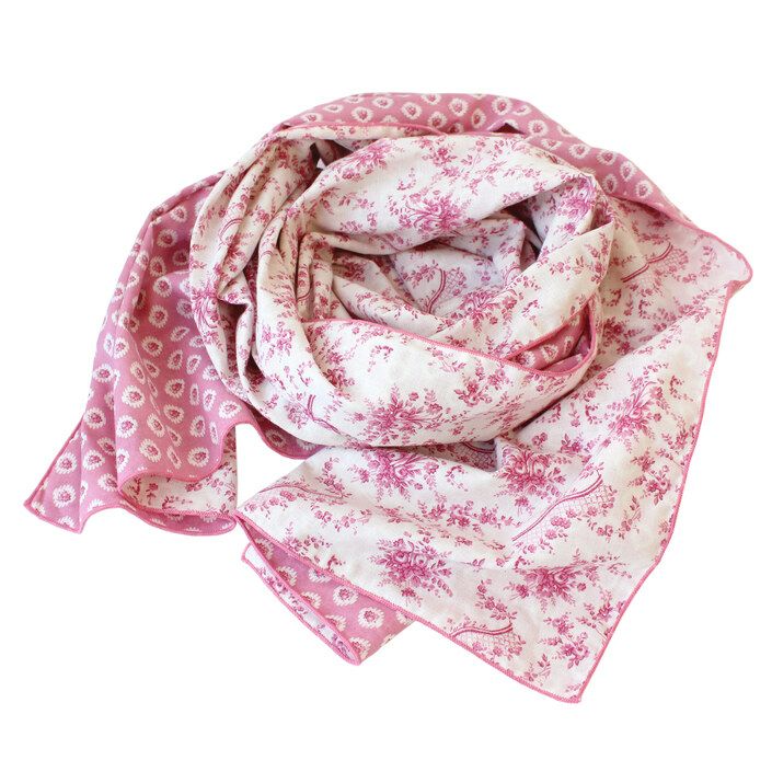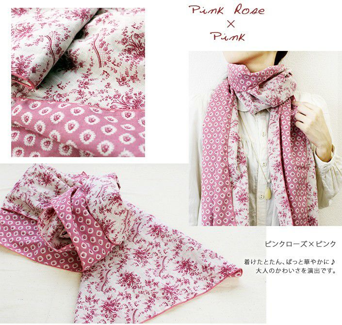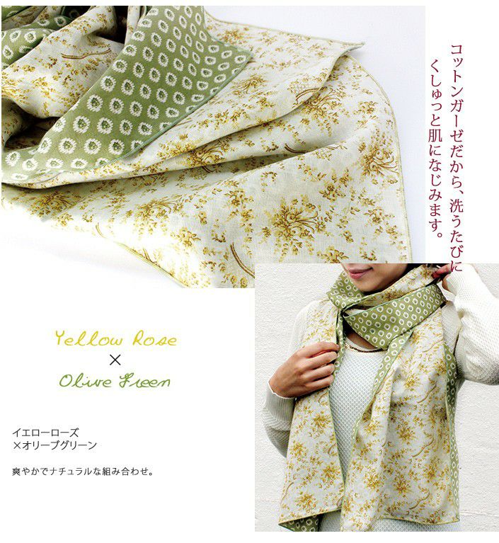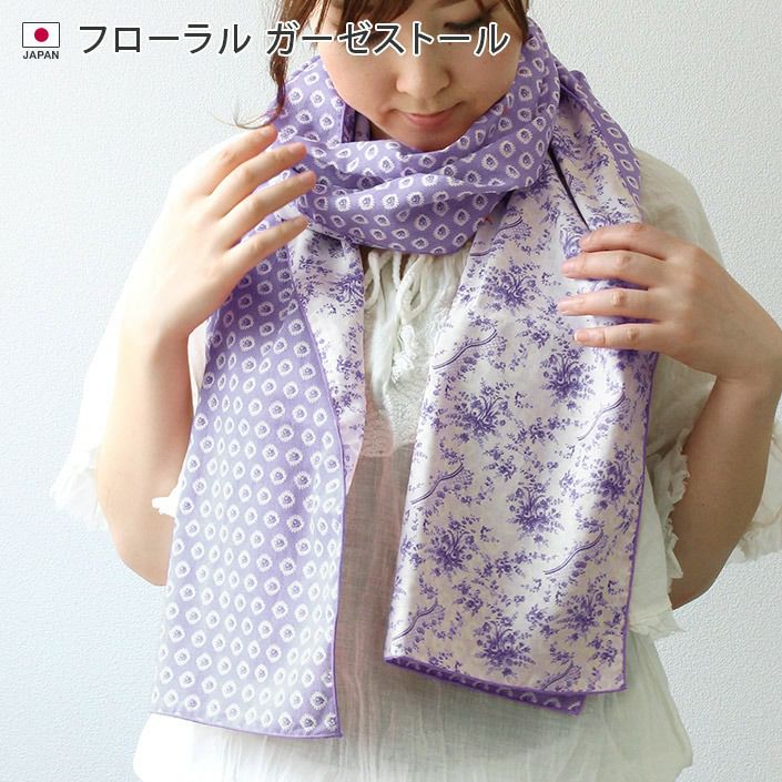 花柄ストール,リバーシブル仕様♪2重ガーゼで優しい温かさ フローラルガーゼストール