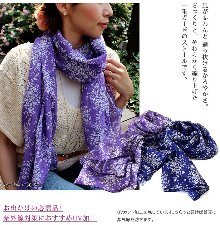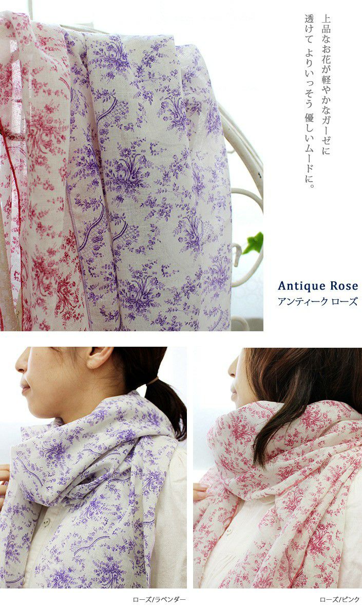 かろやか1重ガーゼ UVカット アンティーク花柄ガーゼストール