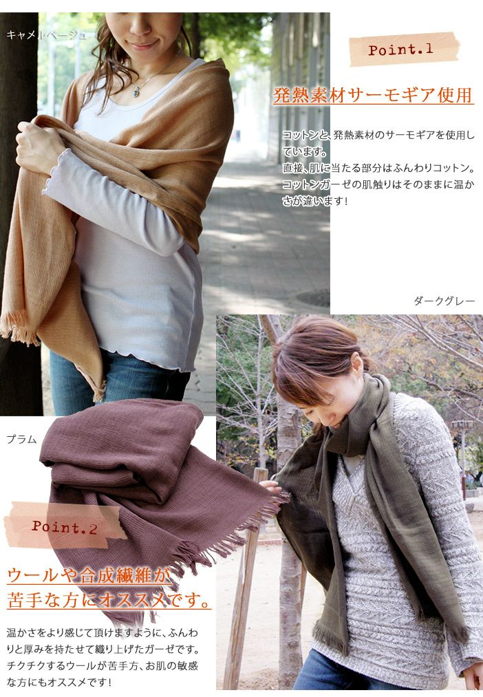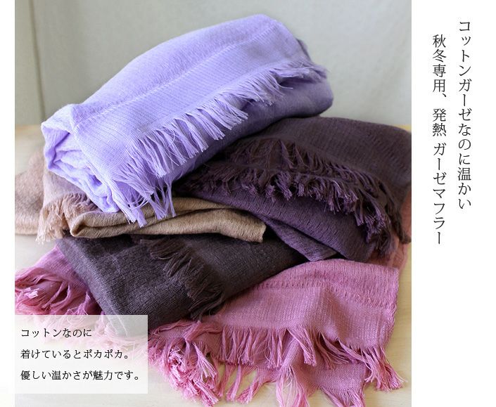温感,発熱するガーゼマフラー (送料無料)マフラー サーモ コットンガーゼマフラー