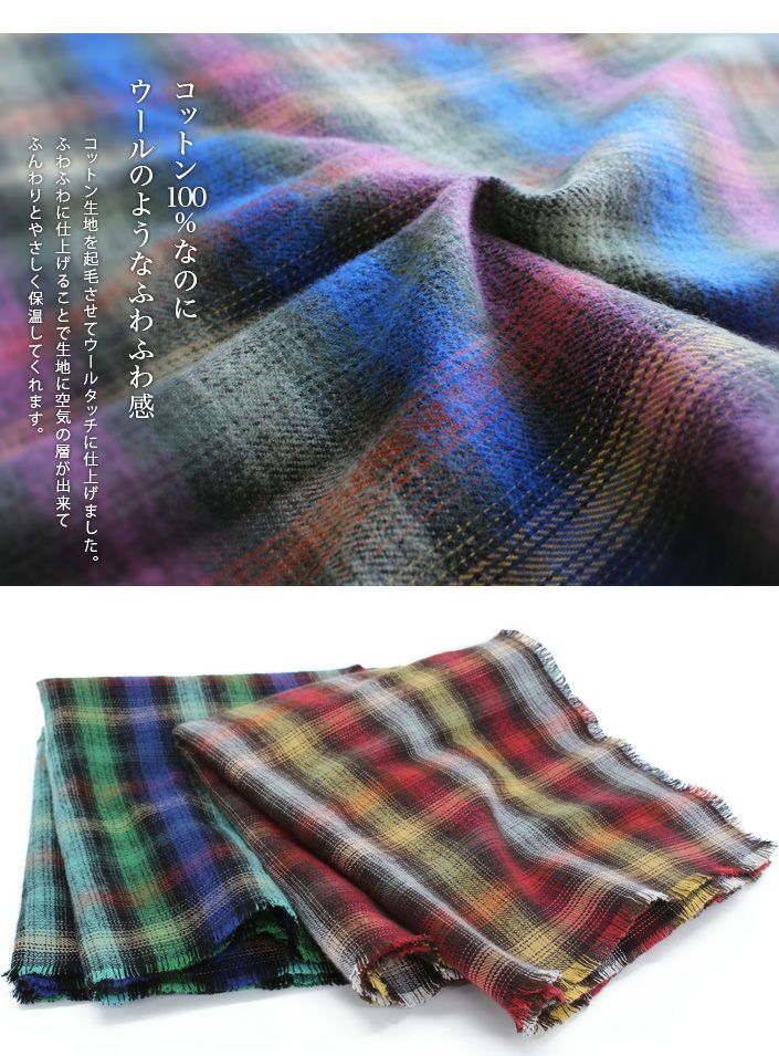 日本製 オーガニックコットン チェックガーゼストール 日本製 UVカット オーガニックコットン チェック ガーゼストール