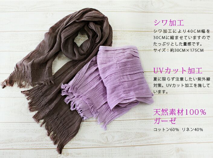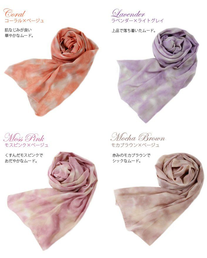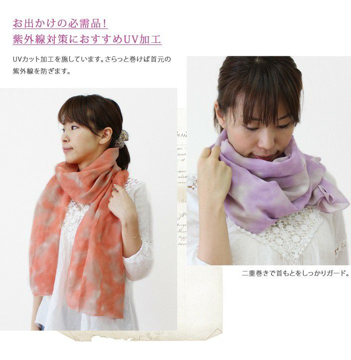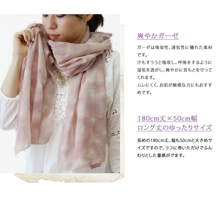 やわらかなグラデーションカラーが上品 UVカット ムラ染め風 ガーゼストール