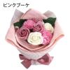 優しく香るソープフラワーを、上質な今治タオルで包みました。見た目だけでなく、香りと肌触りでも心癒してくれる花束です。