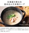 北海道産の野菜と海鮮をぎゅっと詰め込んだ、ちょっと贅沢なスープ。お湯をそそぐだけで野菜と海鮮の旨味を手軽に楽しめます。4種類をお届け。