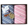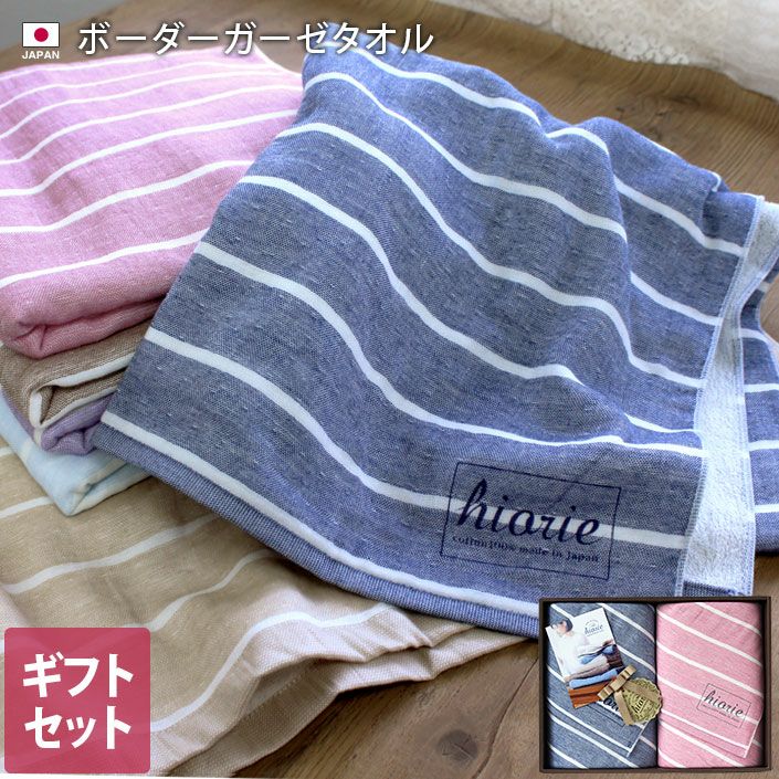 ご結婚のお祝いにもおすすめの、ガーゼバスタオルセットです。 ● 日本製 ボーダーガーゼタオル ギフトセットB<バスタオル2枚>