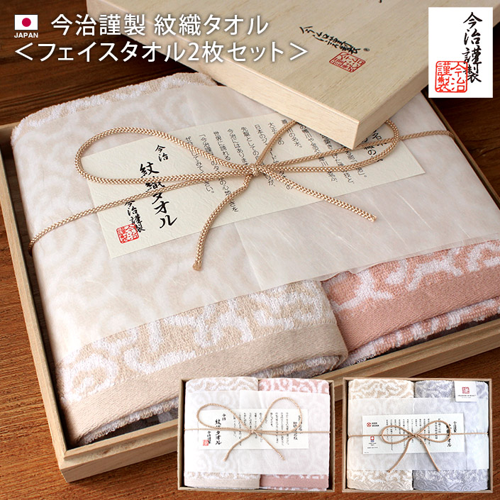 <2点セット> 今治 ギフト 今治謹製 紋織タオル <フェイス2枚> 木箱入 ● <2点セット> 今治 ギフト 今治謹製 紋織タオル <フェイス2枚> 木箱入