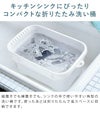 縦置きでも横置きでも、シンクの中で使いやすい角型の洗い桶です。使ったあとは折りたたんで省スペースに収納できます。