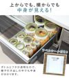ボトル側面とフタが透明なので、戸棚や引き出しに入れても、中身が分かります。食品の名前や期限を書いて貼れるラベルシール付きです。