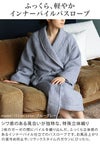 2枚のガーゼの間にパイルを織り込んだ、ふっくら立体感のあるインナーパイル仕立てのバスローブです。お風呂上がりの湯冷め防止や、リラックスタイムのガウンにぴったり。