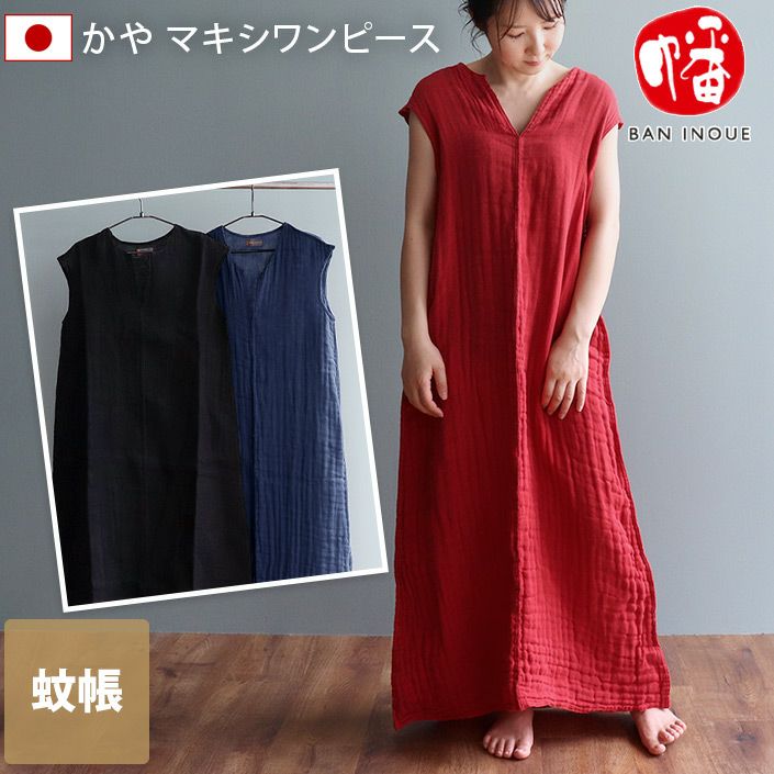 綿100%の心地いい蚊帳のルームウェア (送料無料)日本製 かや マキシワンピース<幡>