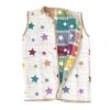 股下のスナップボタンでスリーパーとサロペットの2WAYに変身。ボタンを留めれば、赤ちゃんが足をばたつかせてもめくれ上がる心配なくおやすみできます♪大きくなったら室内用のベストとしても活躍!