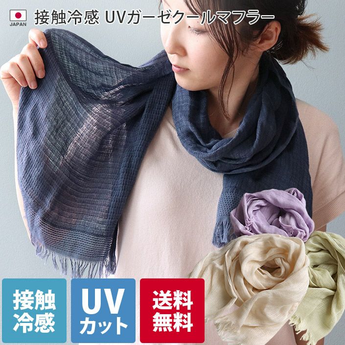 暑い日も爽やかに紫外線対策 (送料無料)日本製 接触冷感 UV ガーゼ クール マフラー