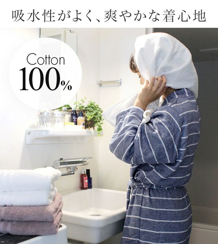 乾きやすく、軽量な片面ガーゼのバスローブ (送料無料)日本製 ガーゼ バスローブ<ボーダー柄>