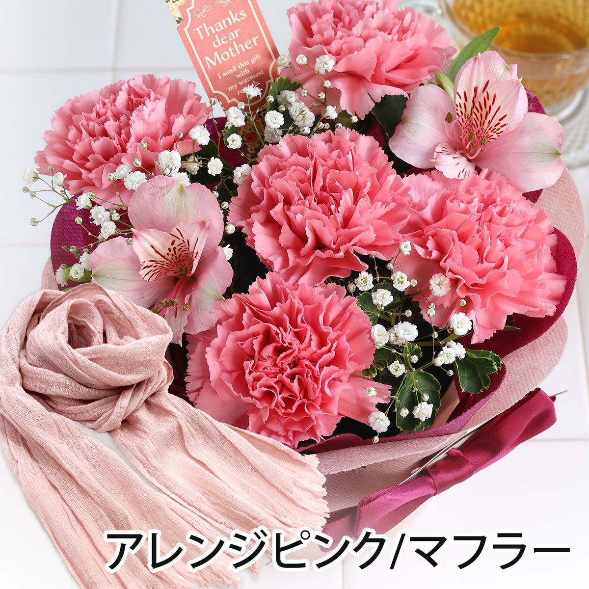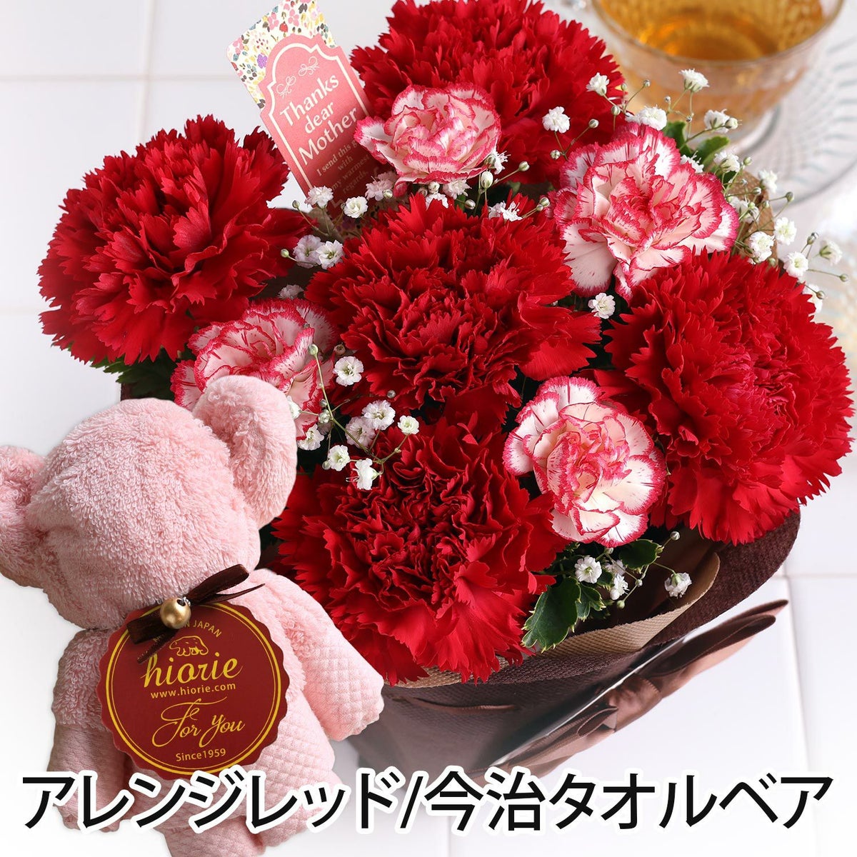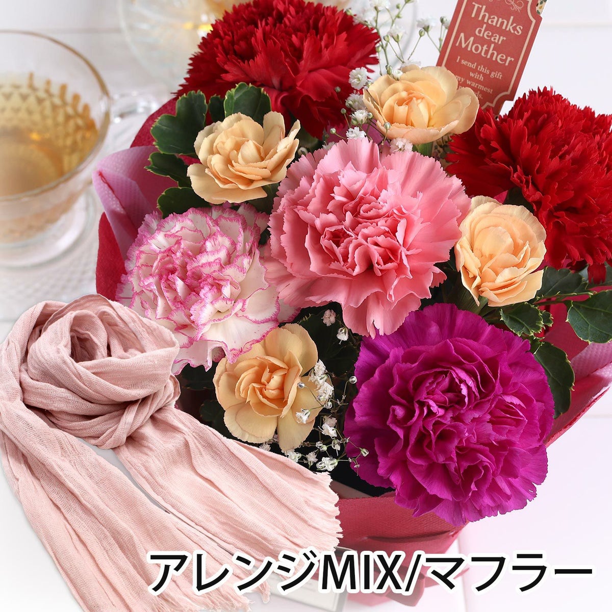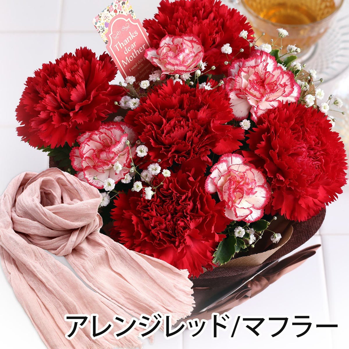 母の日限定!セットアイテムが選べるフラワーギフト (送料無料)母の日 ギフト プレゼント カーネーション アレンジメント & UVガーゼマフラー or ハンドクリーム or 今治タオルベア <母の日限定セット>
