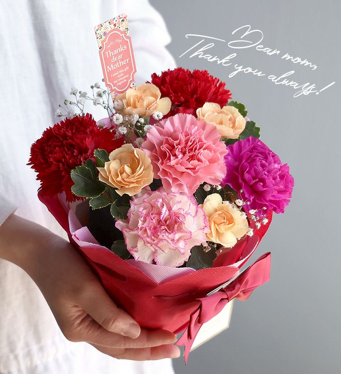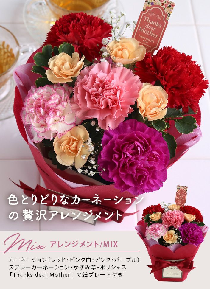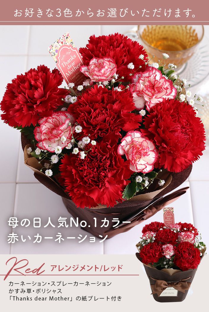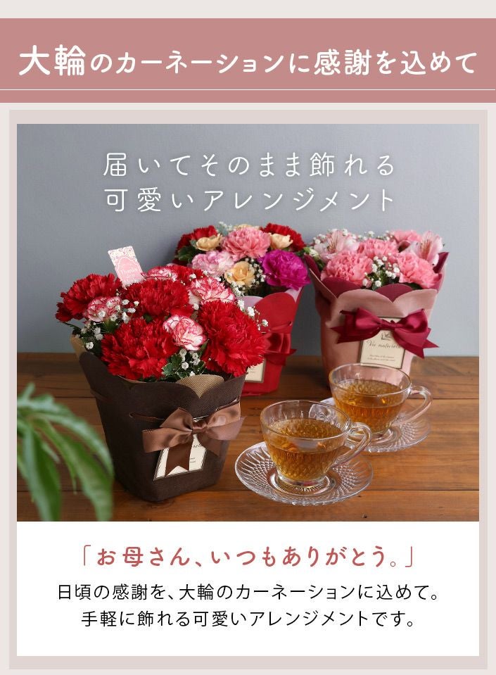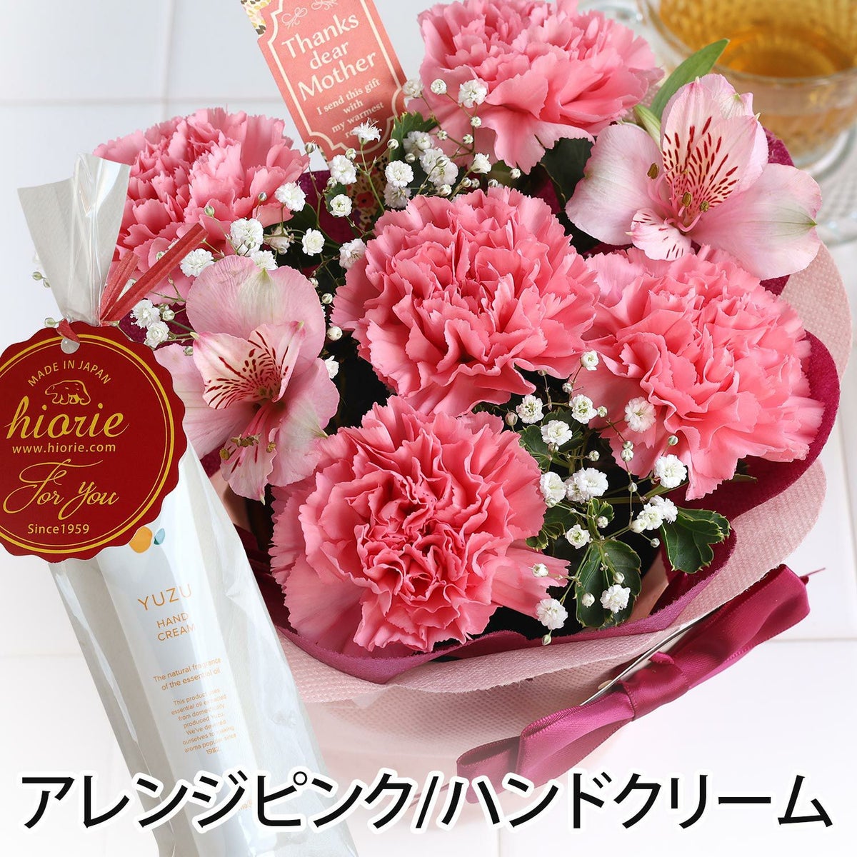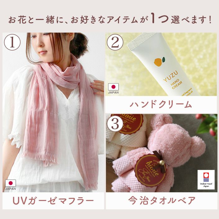 母の日限定!セットアイテムが選べるフラワーギフト (送料無料)母の日 ギフト プレゼント カーネーション アレンジメント & UVガーゼマフラー or ハンドクリーム or 今治タオルベア <母の日限定セット>