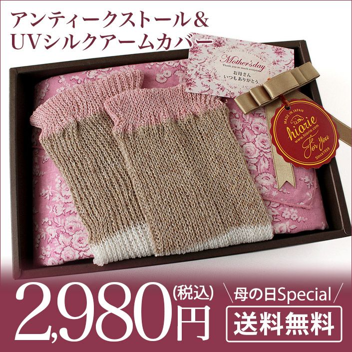 <母の日カード付き>アンティークストール&UVシルクアームカバー (送料無料)母の日 ● <2点セット>日本製 アンティークストール&UVシルクアームカバー ギフトセット