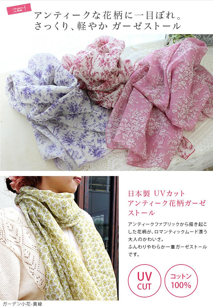 <メール便配送ギフト>日本製 アンティーク 花柄ガーゼストール&入浴剤 プチギフトセット (送料無料)● <メール便配送ギフト>日本製 アンティーク 花柄ガーゼストール&入浴剤 プチギフトセット