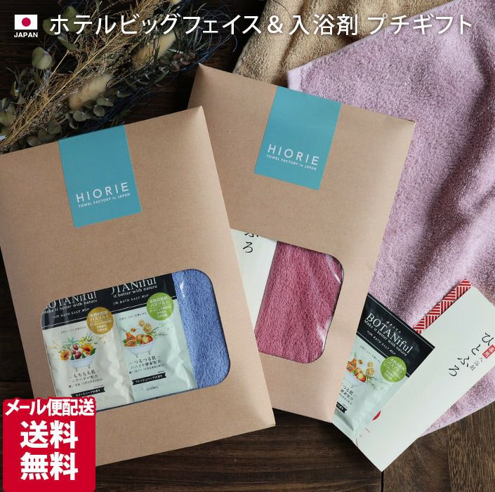 <メール便配送ギフト>日本製 ホテルスタイル ビッグフェイスタオル&入浴剤 プチギフトセット (送料無料)● <メール便配送ギフト>日本製 ホテルスタイル ビッグフェイスタオル&入浴剤 プチギフトセット