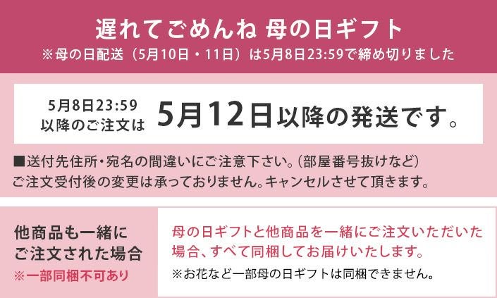 またご注文時に注文内容の変更のご要望を備考欄に記入されましてもお受けすることができませんので、ご了承ください。