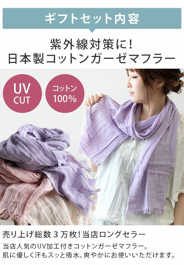 <母の日ラッピング済> 日本製 UVマフラー & 6重ガーゼ ハンド セット (送料無料)<母の日ラッピング済> 日本製 UVマフラー & 6重ガーゼ ハンド セット
