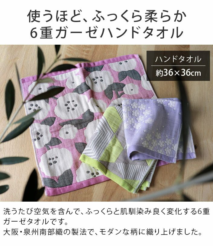 和泉山脈の天然水で晒しを行うことで生まれる、抜群の吸水性と肌なじみの良い柔らかさが特長です。