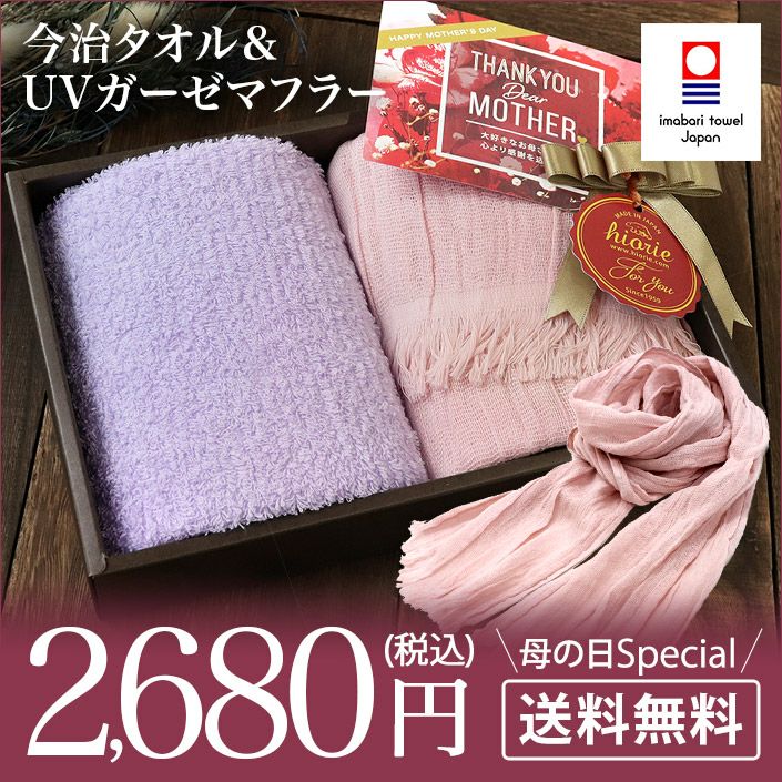 <母の日カード付き>今治タオル&UVガーゼマフラーギフト (送料無料)母の日 ● 今治タオル&UVガーゼマフラーギフト