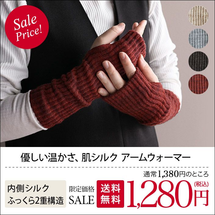 ほんのり優しい温かさ (送料無料)日本製 肌シルク アームウォーマー