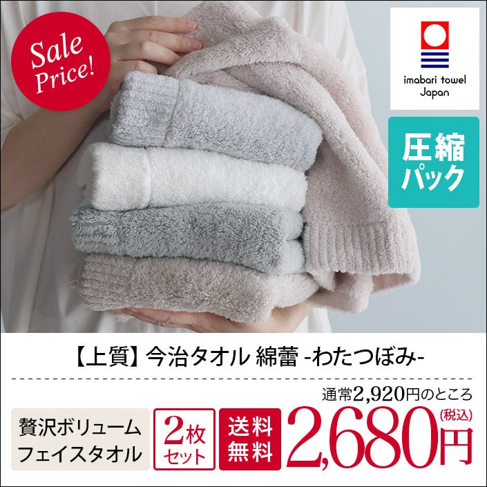 コットンを越えた新境地の肌触り (送料無料)<同色2枚セット>今治タオル フェイスタオル わたつぼみ 綿蕾 【圧縮】