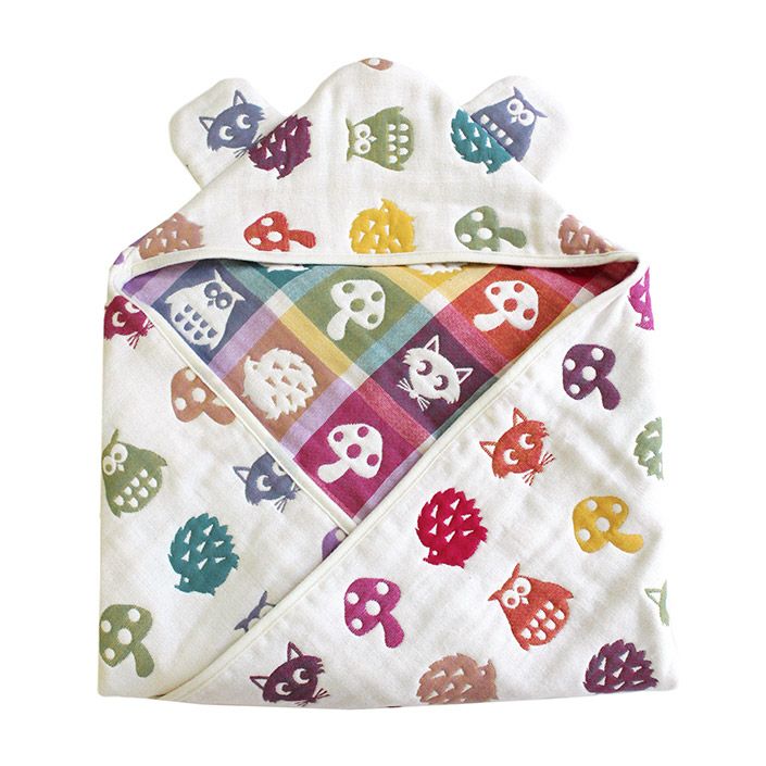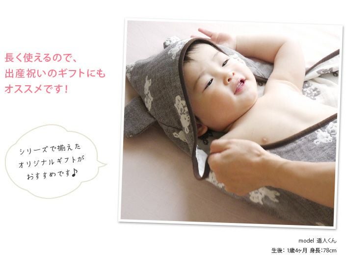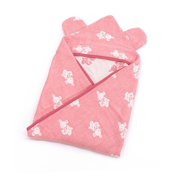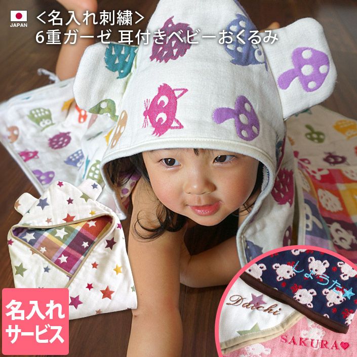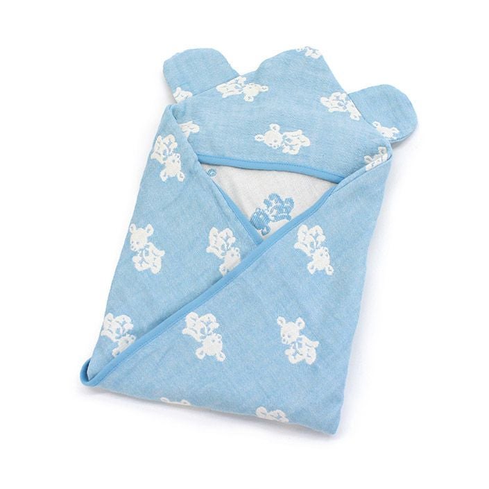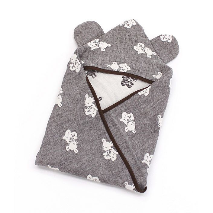 名入れサービス!かわいいクマ耳つき♪ガーゼおくるみ ● <名入れ刺繍>5重ガーゼ 耳付き おくるみ