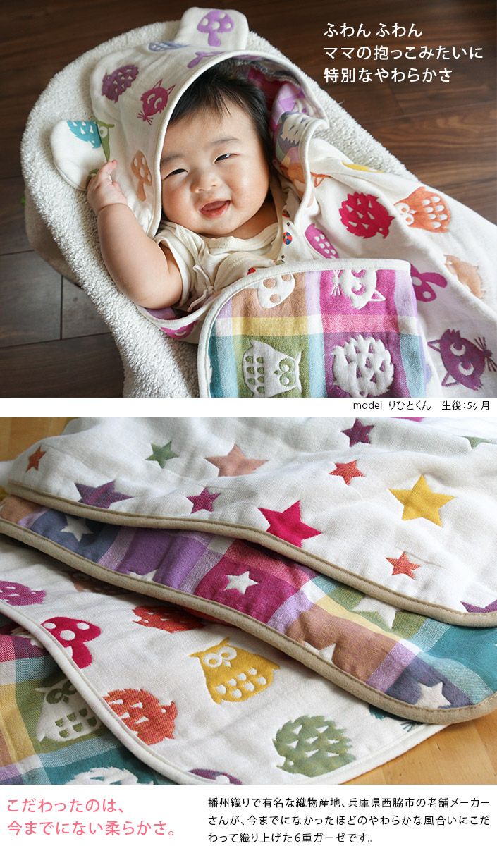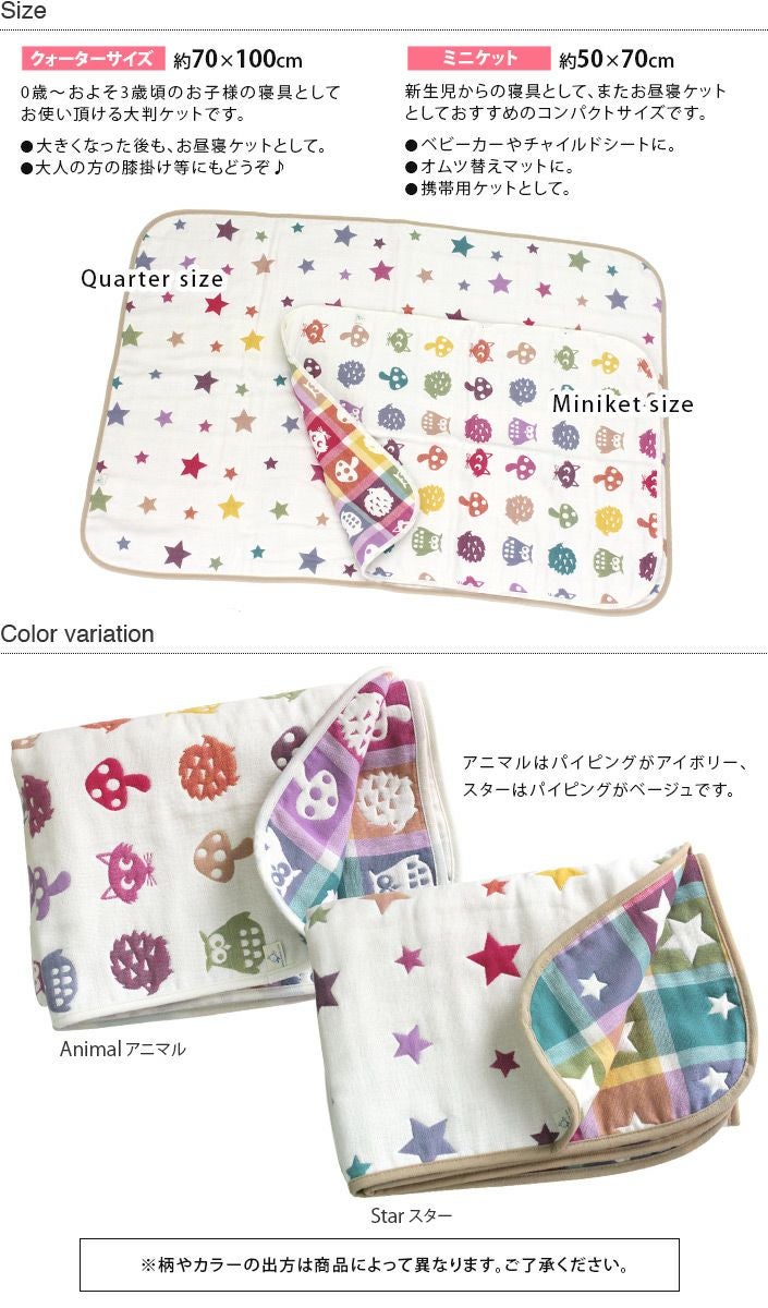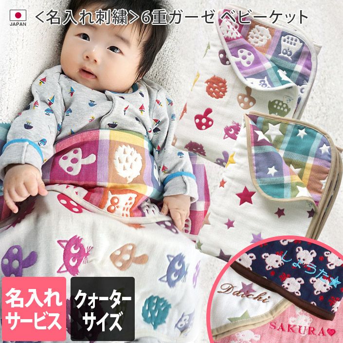 名入れサービス!特別なやわらかさの6重ガーゼベビーケット ● <名入れ刺繍>6重ガーゼ ベビーケット<クォーターサイズ>