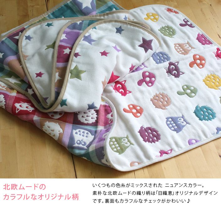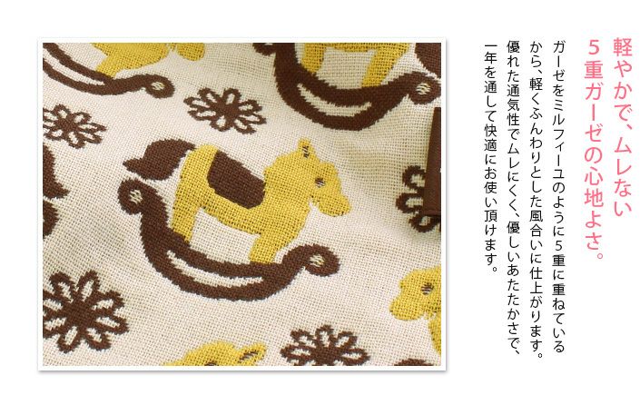 名入れサービス!軽やかで、ムレない5重ガーゼの心地よさ ● <名入れ刺繍>5重ガーゼベビーケット<クォーターサイズ>