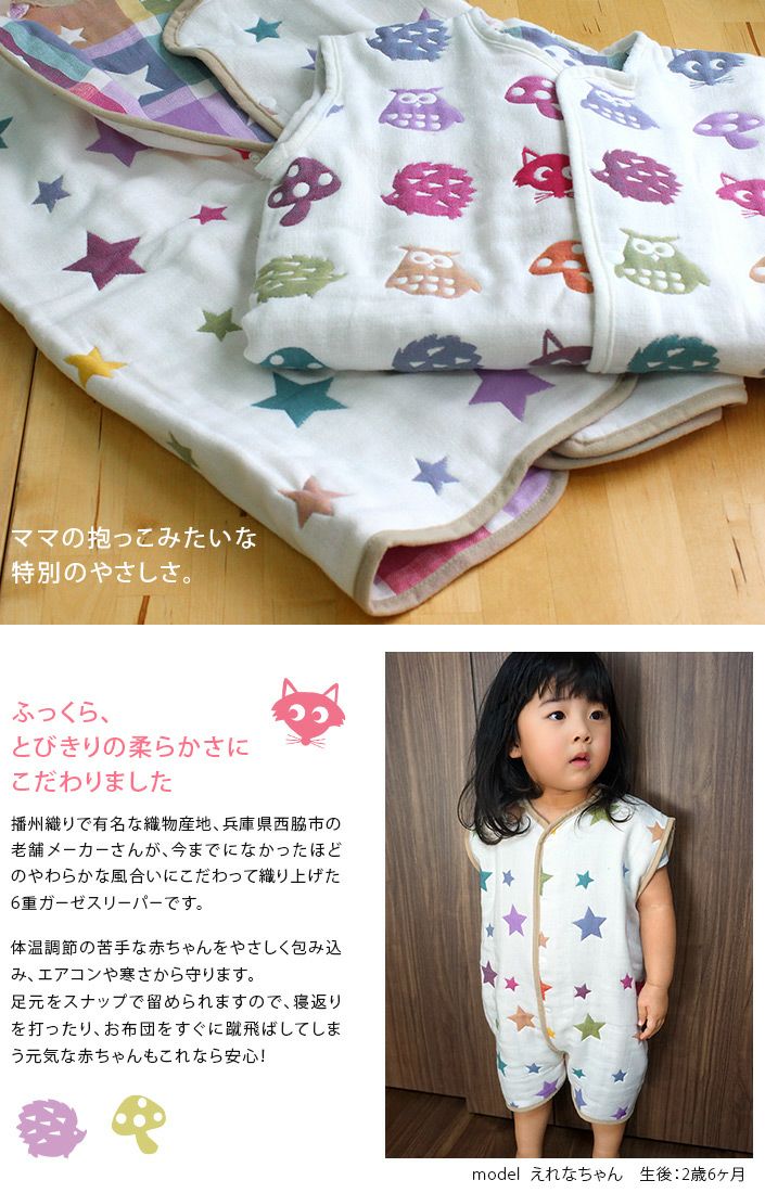 名入れサービス!特別なやわらかさの6重ガーゼ 2WAYベビースリーパー ● <名入れ刺繍>6重ガーゼ 2WAYスリーパー