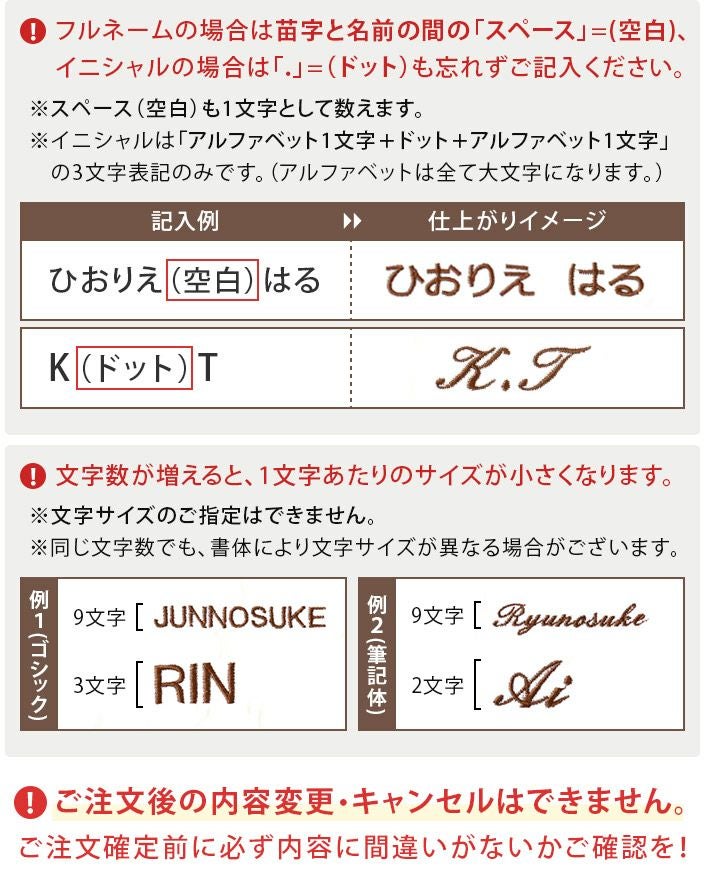 • 名入れ刺繍サービス