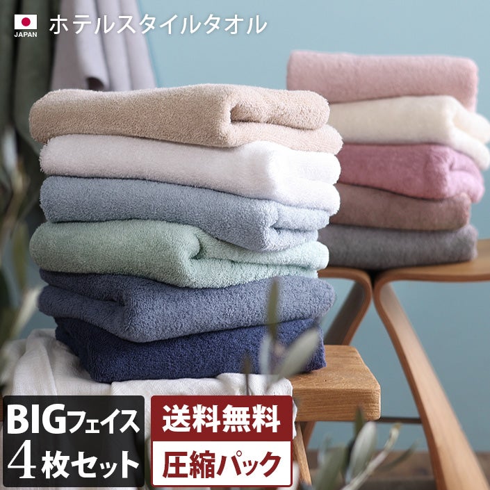 ホテル仕様のふかふか贅沢タオル ビッグフェイスタオルセット (送料無料)<同色4枚セット>日本製 ホテルスタイルタオル ビッグフェイスタオル 大きな100cm丈 【圧縮】