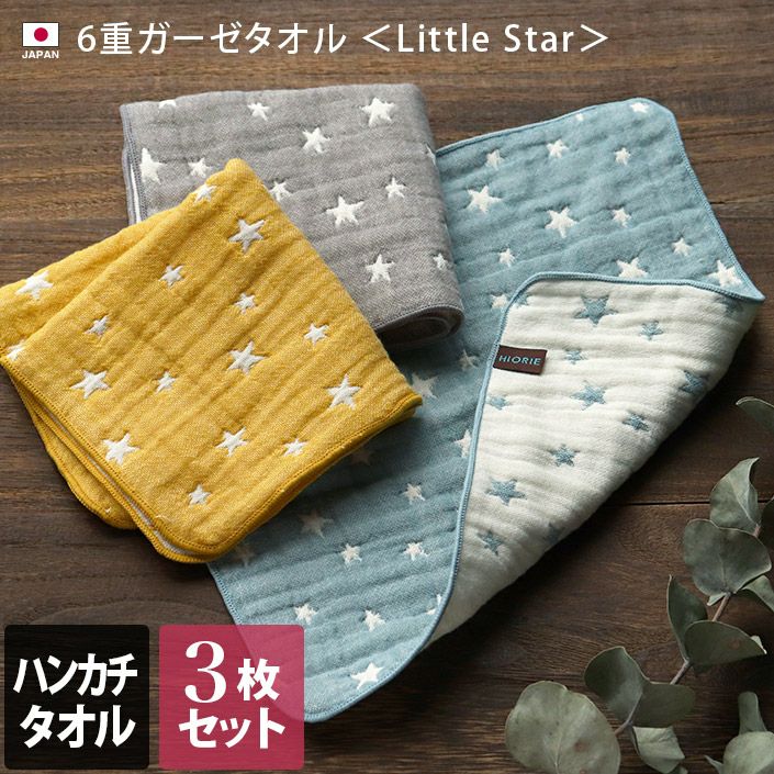 <3枚セット>日本製 6重ガーゼ Little Star ハンカチタオル