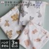 ナチュラルで可愛いデザイン <3枚セット>日本製 ガーゼタオル ハンドタオル クマ・ウサギ・トイプードル柄