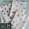 日本製ガーゼタオル フェイスタオル【スイーツ3柄セット】 <3柄セット> ガーゼフェイスタオル/スイーツ柄