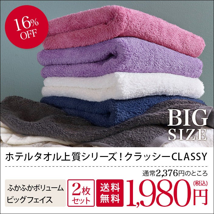 上質綿使用 ワンランク上のホテルスタイルタオルシリーズ (送料無料)<同色2枚セット> ホテルスタイルタオル 高級 CLASSY(クラッシー) ビッグ フェイスタオル