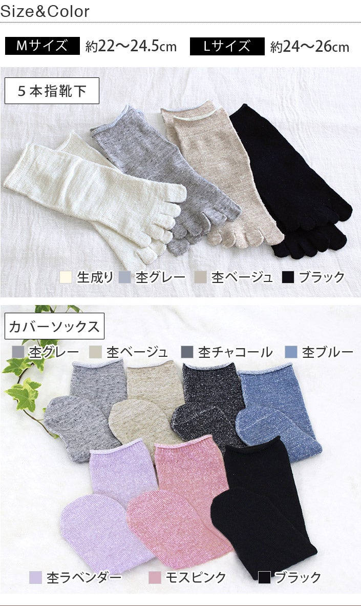冷えとり専用 4枚セットシルク正絹5本指+綿5本指+シルク先丸+綿先丸カバー (送料無料)日本製 冷えとり靴下 シルク/コットン 5本指 【重ねばき専用4足セット】