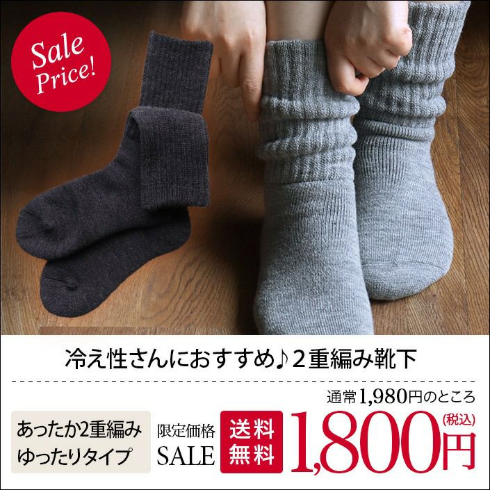 とびきりの温かさで人気の2重編み靴下を、よりゆったりした履き心地に編み立てました。おやすみ時やリラックスタイム、冷えやすい足元を優しく包み込んでくれる、おうち靴下です。