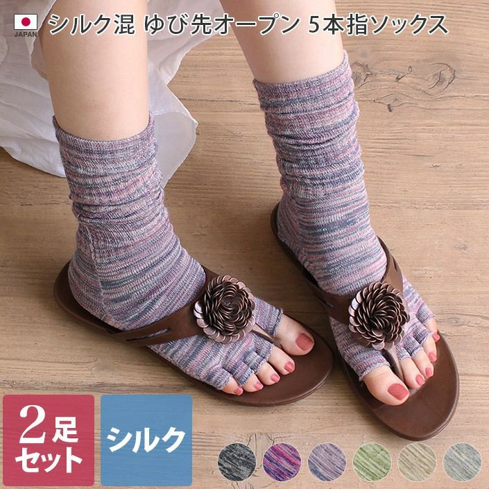 日本製 シルク混ゆび先オープン5本指ソックス