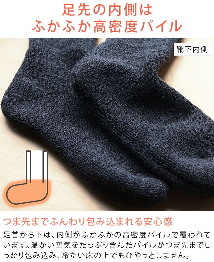 あったか2重編みシリーズの通販ならタオル直販店ヒオリエ。抜群の断熱性と保温性が特長の2重編みあったか靴下は10年以上のロングセラー商品です。厚手のリブ編みを折り返してふっくらボリュームの2重構造に仕上げているため、生地の間にできた空気の層が温かさを逃しません。足先の内側はふっくらと弾力のある高密度パイルで、冷えがちな足先をしっかり包み込み、ずっとぽかぽかが続きます。伸ばして履けば、太ももまでカバーできるレッグウォーマーも取り揃えています。心地よさと温かさにこだわった冷え性さん専用冬靴下は、職人さんが手間暇かけて編み上げた贅沢な日本製。ギフトにもおすすめです。
