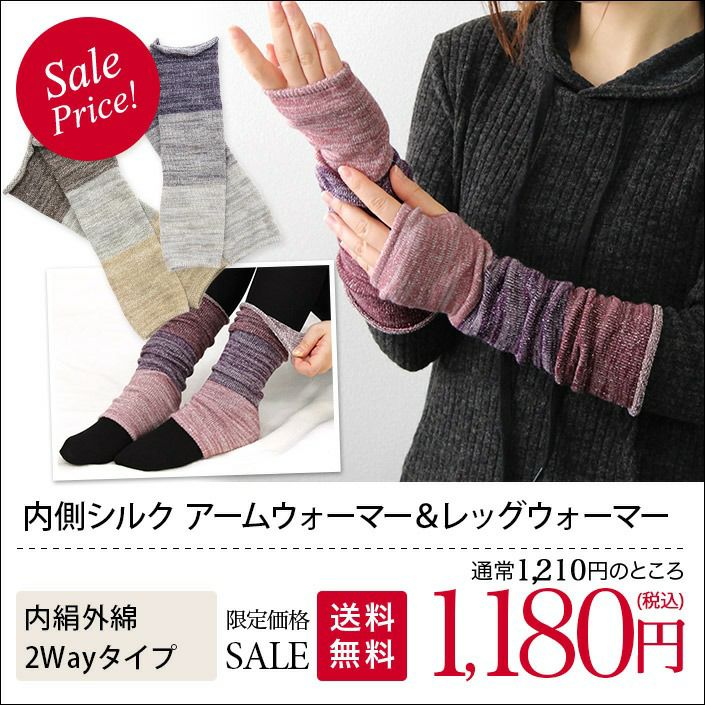 冷えとりにも♪1枚2役の優秀アイテム! (送料無料)肌シルク アームウォーマー&レッグウォーマー 内絹外綿
